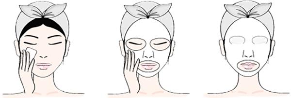 Take out the sheet mask and place it on your face, avoiding the eye and lip areas.