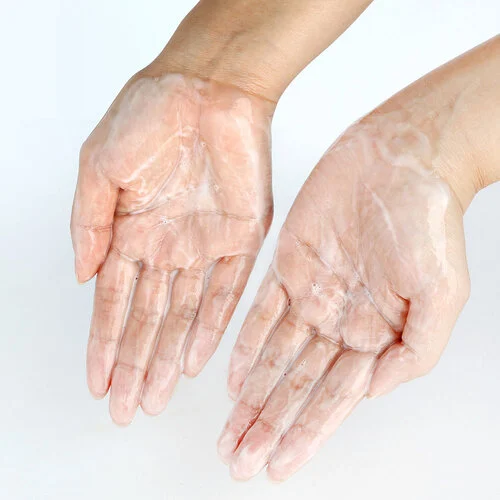 - Fërkoni duart derisa të formohet një masë shkume.